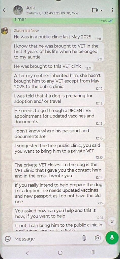 From this correspondence it is clear that Colova even doesn’t know that there are no such an entity as a “public clinincs” in Bulgaria, all vet.clinics are open to public, but there are Municipality programmes, which are targeted at stray animals welfare, and there the veternary services are paid by public funds.