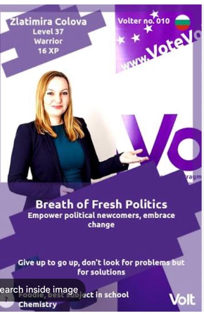 Zlatimira Colova intorduces herself to the eletorate as a liason person with the EU insitutions, engaged in PR with different stake-holders, an even as an “international Secreatry Genaral”. She also works at the European Parliament. What an intense lifestyle!